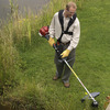 Léger et nerveux, ce modèle 25cc se tient par un anneau de portage, et est équipé en série d'une tête nylon semi-automatique, qui permet le déroulement du fil par une simple pression sur le sol. Il convient particulièrement pour les finitions du jardin et le fauchage.